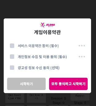 서비스 이용약관과 개인정보 수집 및 이용 동의를 하지 않을 경우 게임을 시작할 수 없습니다.