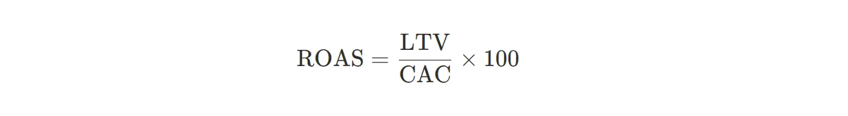 ROAS는 마케팅을 진행할 때 가장 많이 측정하는 지표 중 하나로, 광고에 투자한 금액 대비 얼마나 많은 수익을 회수했는지를 백분율로 나타냅니다. 예를 들어 $1,000의 광고비로 유입된 유저들이 $800의 수익을 발생시켰다면, ROAS는 80%입니다.