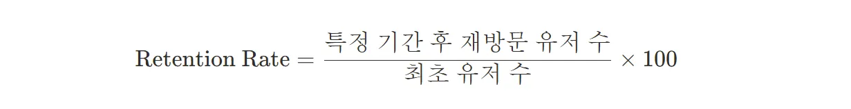 Retention은 게임을 시작한 유저가 일정 기간 후에도 게임을 플레이하는지를 측정하는 지표입니다. 예를 들어, 월요일에 1,000명이 게임을 처음 시작했는데 화요일에 400명이 다시 접속했다면, D1(Day 1) 리텐션은 40%입니다.