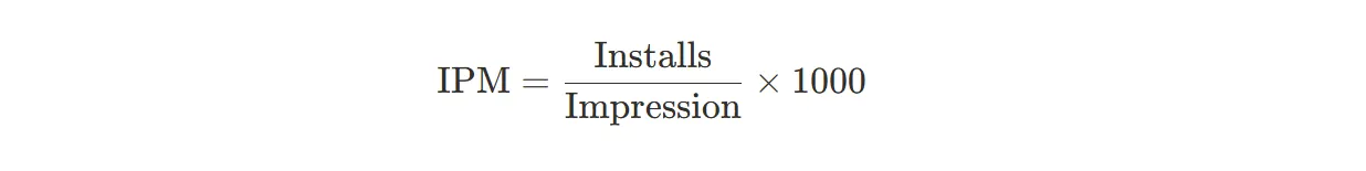 IPM(Installs Per Mille)은 광고가 1,000번 노출되었을 때 발생하는 평균 설치 수를 나타내는 지표로, 전환율(CVR)과 유사한 개념입니다. 그러나 앱 설치, 앱 실행 등 ‘전환’을 자유롭게 설정할 수 있는 CVR과 달리, IPM은 오직 앱 설치(Install)를 기준으로 측정하기 때문에 보다 일관된 측정 기준을 적용할 수 있다는 장점이 있습니다.
