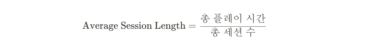 Session Length는 한 유저가 게임을 실행했을 때(Session) 플레이하는 평균 플레이 시간을 의미합니다. 예를 들어, 하루 동안 1,000개의 세션이 발생했고 총 플레이 시간이 10,000분이라면, 평균 세션 길이는 10분입니다.