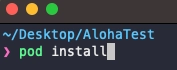 터미널 창을 열어 XCode 프로젝트가 있는 경로에서 pod install을 실행합니다.