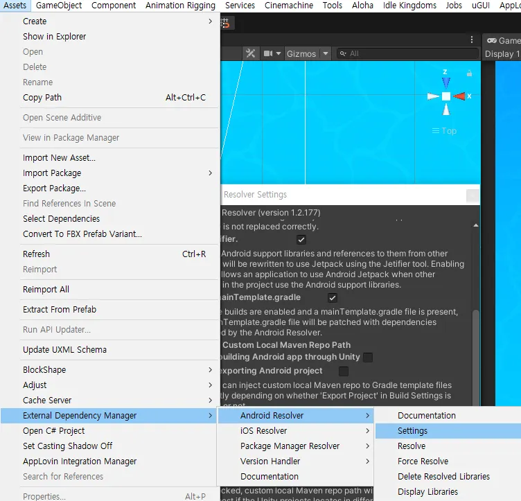 알로하 SDK 적용한 상태에서 AlohaSDK 내부의 Firebase 폴더를 Assets 폴더 아래로 옮기고, External Dependency Manager> Android Resolver> Force Resolve 해보신 다음