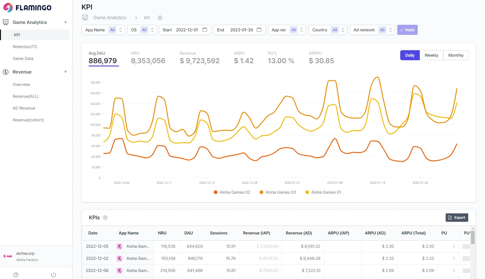 How to improve your game's performance with data analytics reports: Aloha Factory Analytics Report