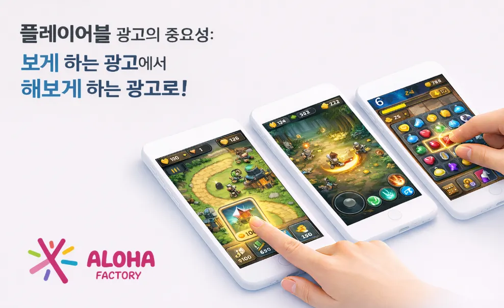알로하팩토리 자체 개발 게임과 외부 제작 대행 프로젝트를 아우르며, 다양한 포맷의 고효율 크리에이티브를 실제 사례 중심으로 정리했습니다.