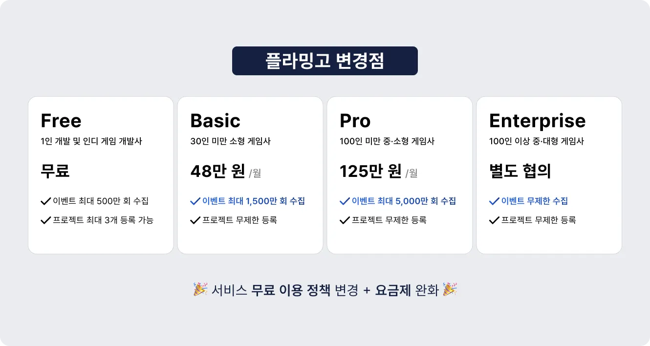 지난번 소개해드렸던 게임 퍼블리싱 어시스턴트, 플라밍고는 보다 많은 개발사의 어려움을 해결하기 위해 다양한 기능 및 서비스 개선을 꾸준히 시도하고 있습니다. 오늘은 그 중에서도 가장 큰 변화를 이루어낸 ‘서비스 상용화’에 대한 이야기를 나누려고 해요. 보다 많은 고객이 퍼블리싱에 대한 어려움을 극복할 수 있도록 서비스의 허들(Hudle)을 낮추는 일부터, 많은 고민과 의사결정이 필요했던 가격 정책을 변경하는 일까지. 지난 한 달간 바뀐 플라밍고의 새로운 모습을 소개합니다.