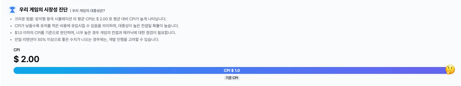 CPI 테스트는 모바일 게임에서 대중성을 이해하는 수단으로 활용됩니다.