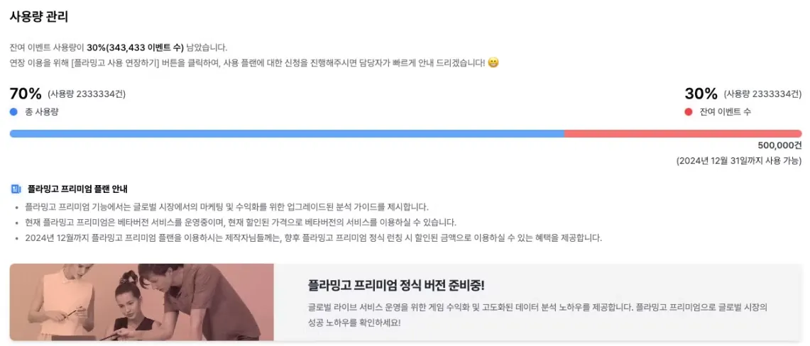 프리미엄 버전은 현재 퍼블리싱/마케팅 테스트를 진행중이신 개발사를 대상으로 수익화 및 마케팅 성과분석을 제공해드리고 있습니다.